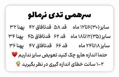 جنس تدی پارچه خارجی فوق العاده نرم و لطیف 🌿جدول سایز و چک کنید