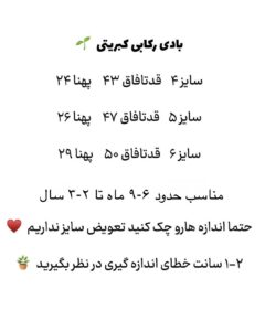 | سایز | سایز ۴۰, سایز ۴۵, سایز ۵۰, سایز ۵۵, سایز ۶۰, سایز ۶۵ |