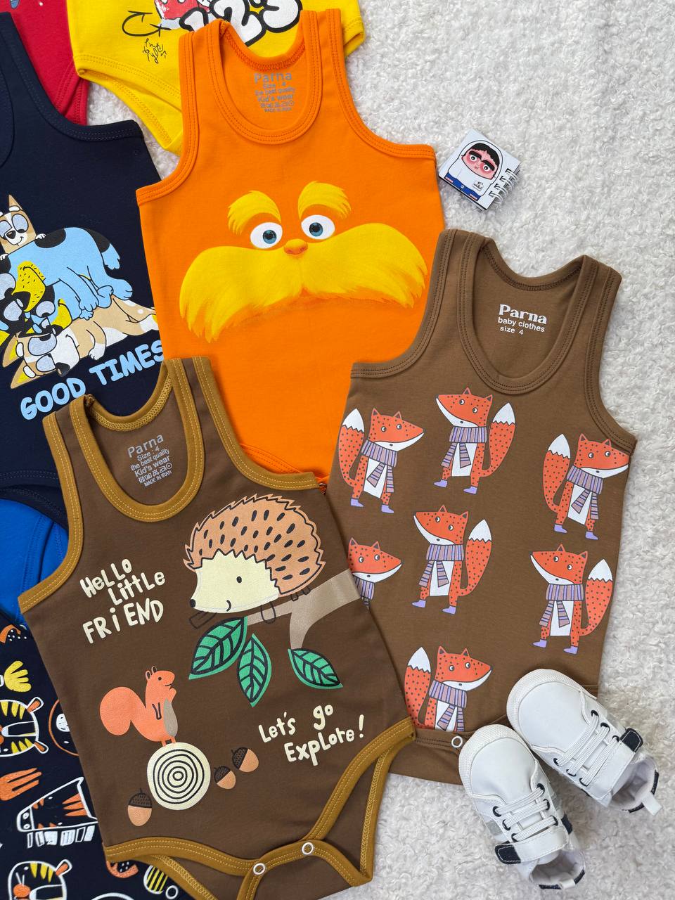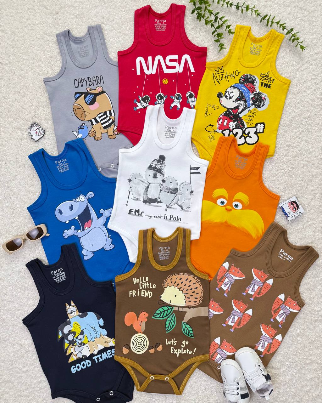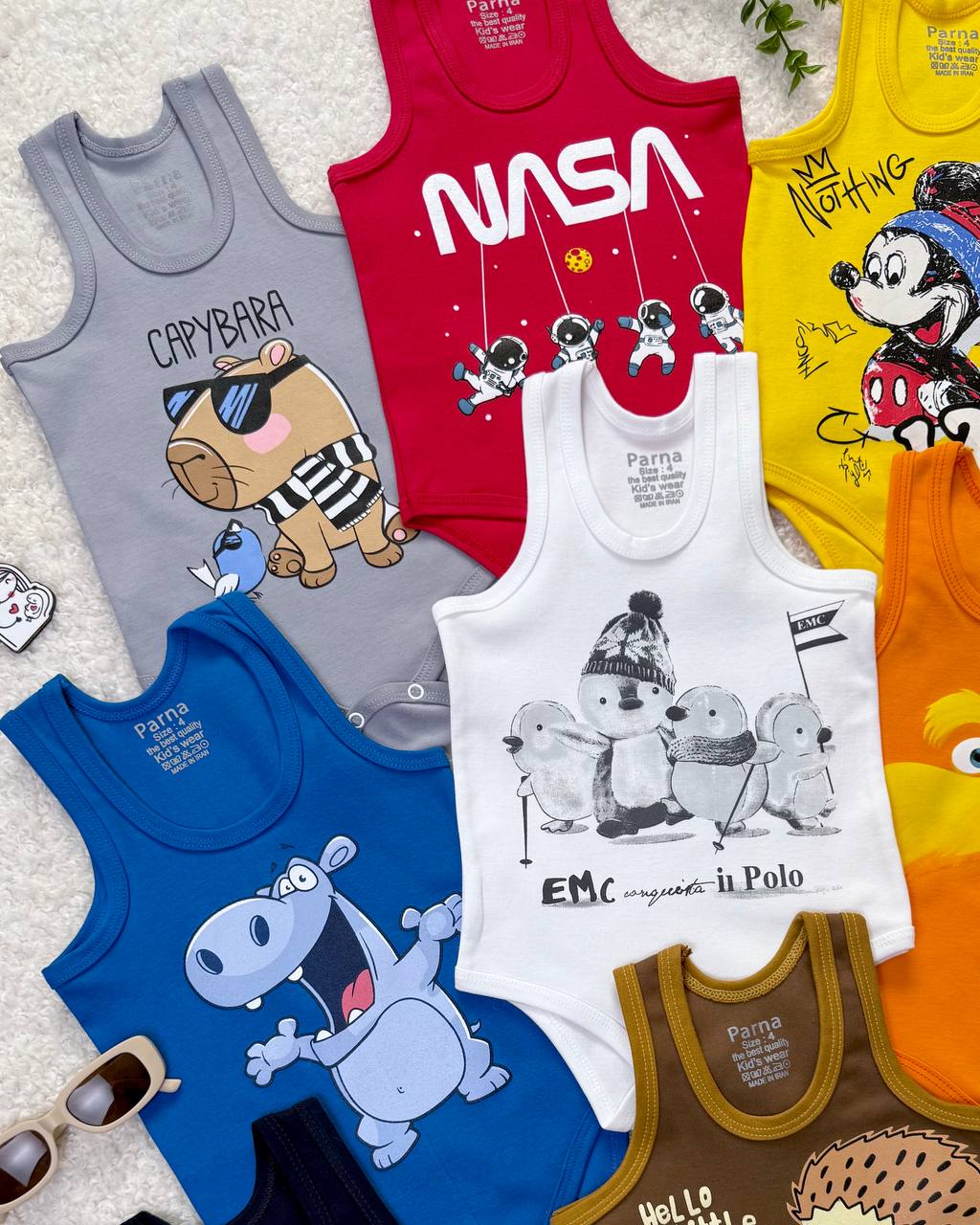 طرح | اسب آبی کاربنی, پنگوئن سفید, جوجه تیغی شکلاتی, روباه قهوه ای, سبیل نارنجی, سگ سرمهای, عینکی طوسی, فضانورد قرمز, میکی موس زرد |