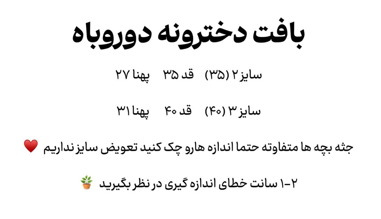 بافت با کیفیت برای تعیین سایز حتما جدول سایز بندی رو چک کنید❤️🌱
