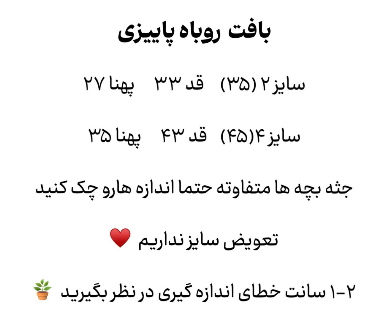بافت با کیفیت برای تعیین سایز جدول سایز بندی رو حتما چک شود 🌱❤️