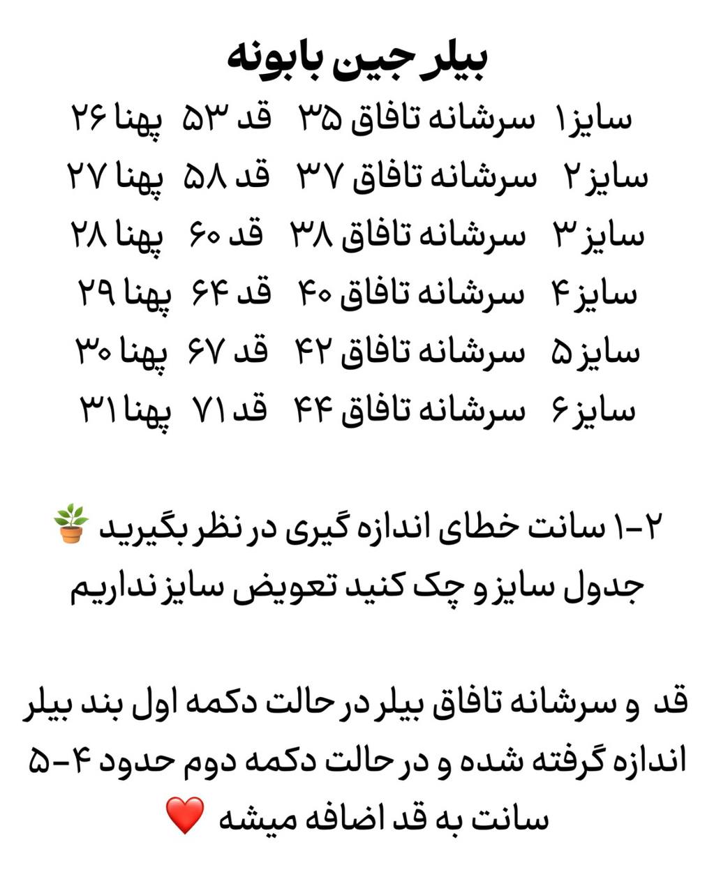 بیلر جین بابونه سایزبندی حدود ۳ ماه تا دو سه سال برای تعیین سایز جدول سایز چک کنید ❤️