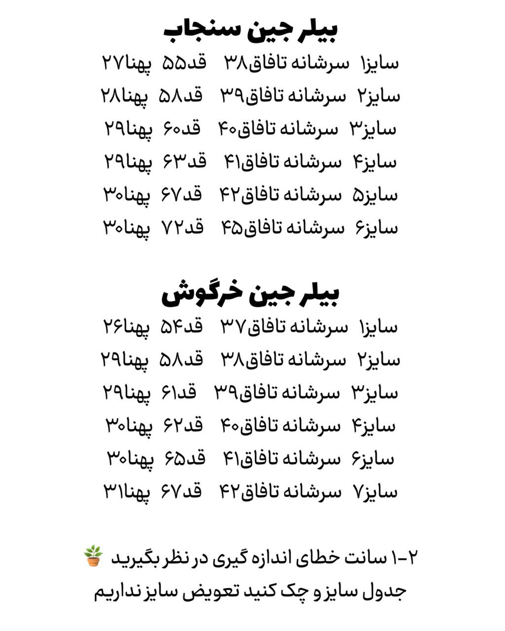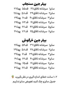 جدول سایز و چک کنید تعویض سایز نداریم