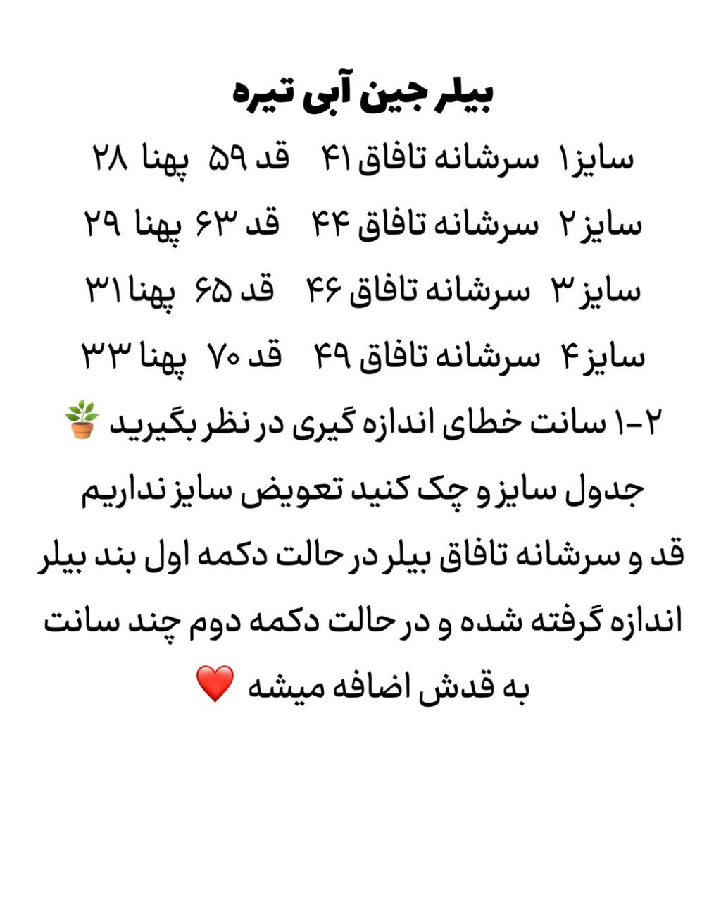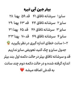 جین سنگ شور با کیفیت عالی حدودا از ۶ماه تا ۳سال برای تعیین سایز حتما جدول اندازه ها چک شود🌱