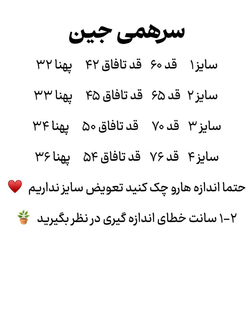 جنس جین سنگشور بسیار باکیفیت مناسب حدود 6ماه تا 3الی 4سال ❤️😍برای تعیین سایز جدول و چک کنید ☘️