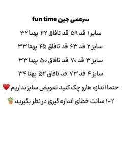 از حدود ۶ماه تا ۳سال برای تعیین سایز جدول اندازه ها چک شود♥️