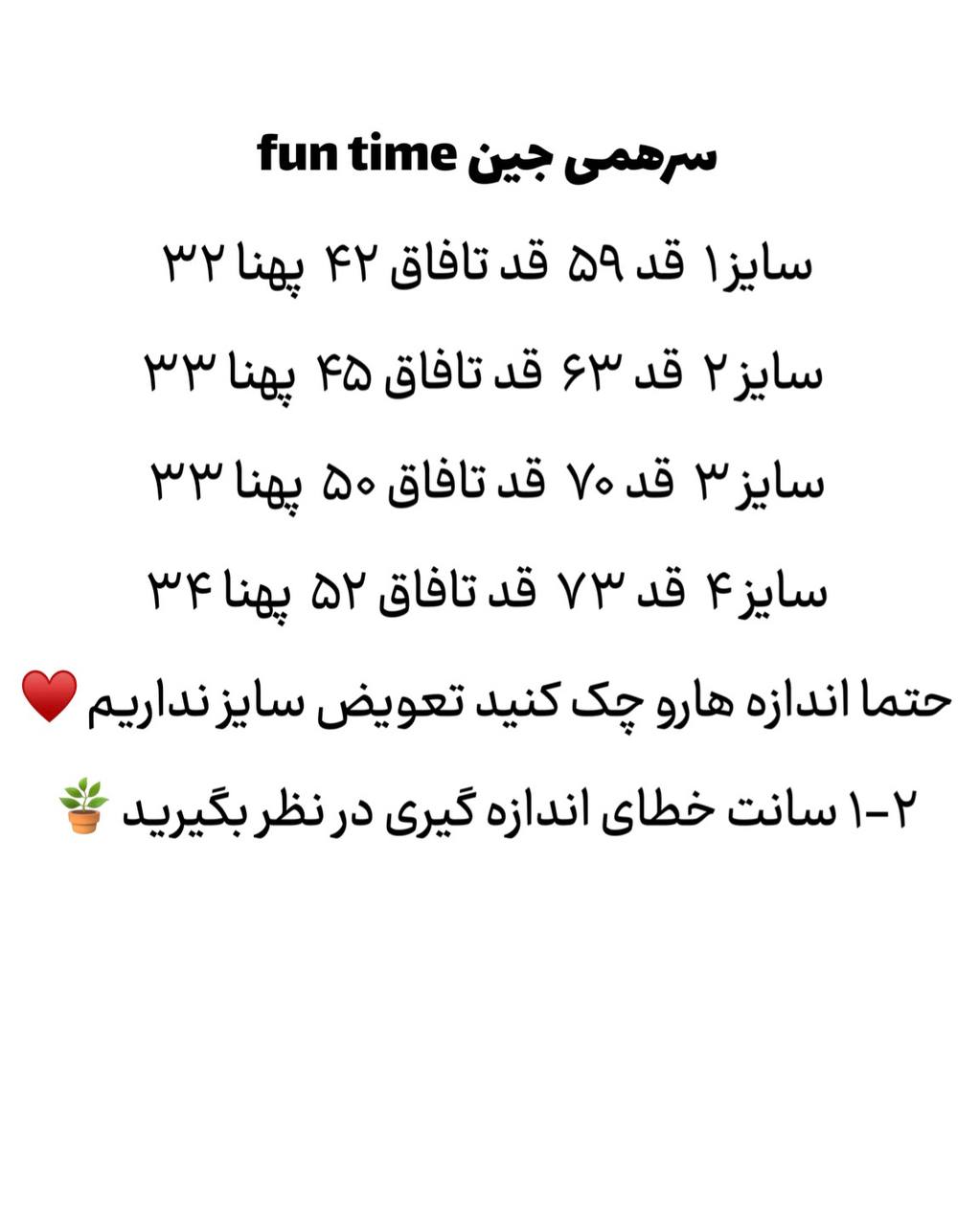 از حدود ۶ماه تا ۳سال برای تعیین سایز جدول اندازه ها چک شود♥️