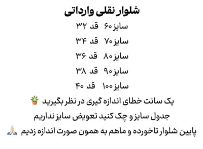 اولین نفری باشید که دیدگاهی را ارسال می کنید برای “شلوار نقلی وارداتی” لغو پاسخ