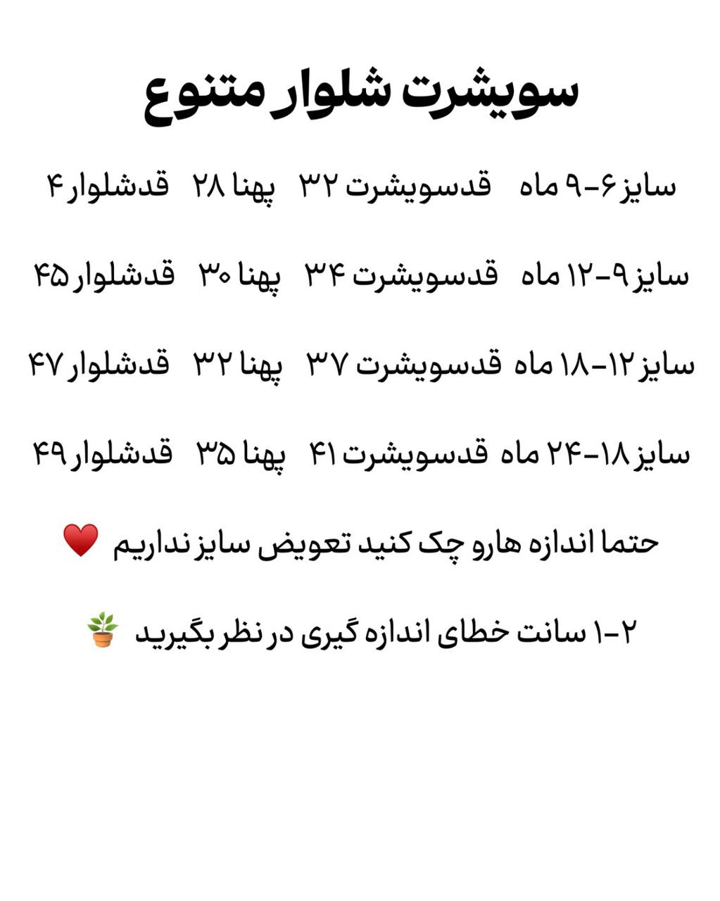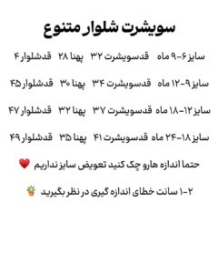 مناسب ۴ ماه تا حدود ۲ سال جدول سایز و چک کنید 🌱 دورس دونخ صدرصد پنبه
