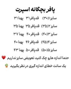 | سایز | ۱۲تا۱۸ ماه, ۱۸تا۲۴ ماه, ۲۴تا۳۶ ماه, ۹تا۱۲ ماه |